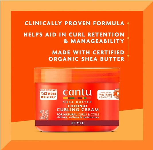Cantu Crema rizadora de coco con manteca de karité para cabello natural, 12 onzas